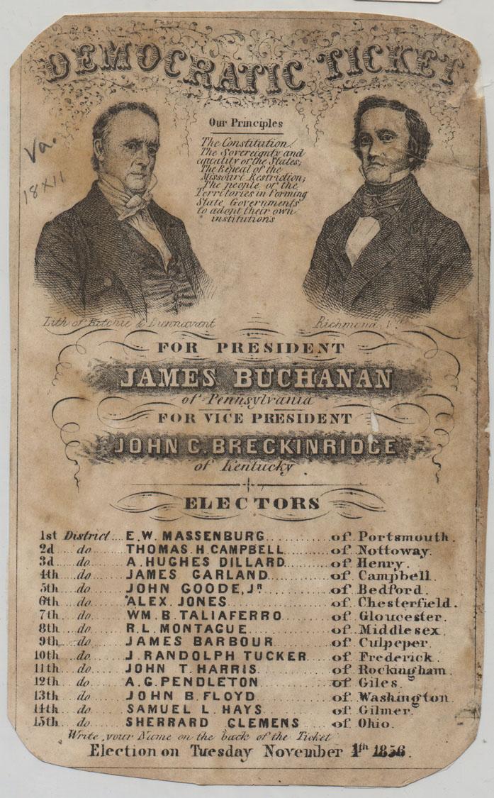 The fall of 1856 saw a flurry of picnics, mass meetings, torchlight parades, and scathing editorials—along with beatings, riots, and dirty tricks—as the parties campaigned. Placards and posters celebrated Buchanan and Breckinridge as defenders of the Union. There were even songs: